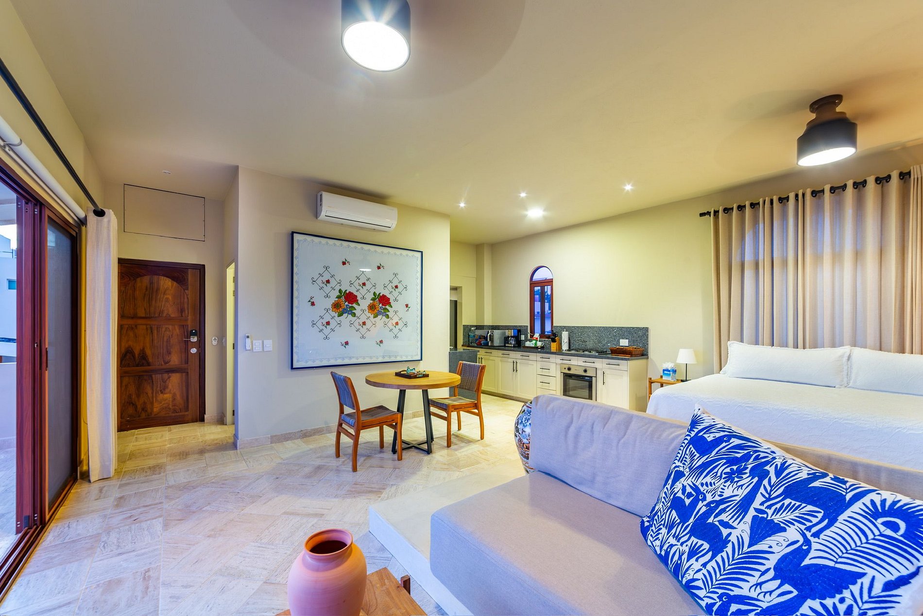 Esta propiedad es un penthouse dentro de un exclusivo desarrollo boutique de solo tres departamentos. Cuenta con una cama king size, sala de televisión, comedor para dos personas, cocina equipada con estufa y refrigerador, lavadora, secadora, baño completo y un balcón con una increíble vista al mar.