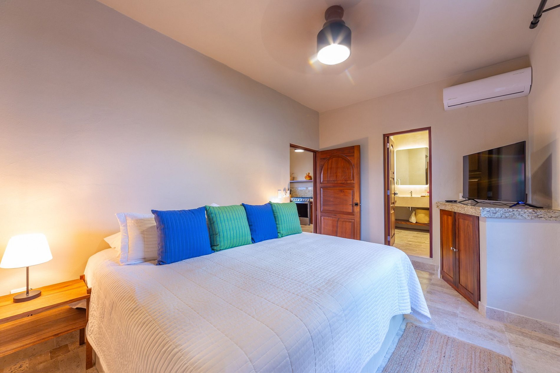 Los tres primeros departamentos forman parte de un desarrollo boutique que comparten una alberca entre ellos. Cada uno cuenta con cama king size, aire acondicionado, refrigerador, cocina equipada, baño completo, sala, televisión y una amplia terraza. El penthouse, además, ofrece lavadora, secadora y una vista espectacular al mar.